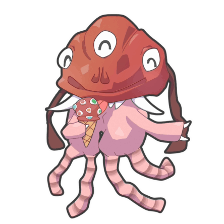Content Description: a cartoon drawing of a monster holding an ice cream cone and wearing a pink sweater
