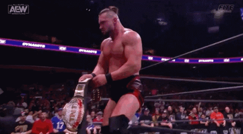 Content Description: a wrestler is holding a rope in his hands while standing in the ring .