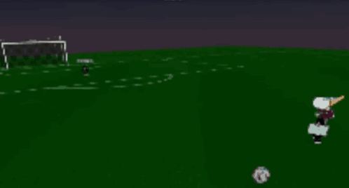 Content Description: a cartoon of a person kicking a soccer ball with a goal in the background