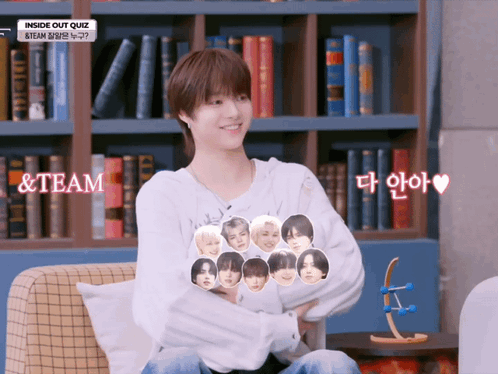 Content Description: a young boy is sitting on a couch with a sign that says inside out quiz