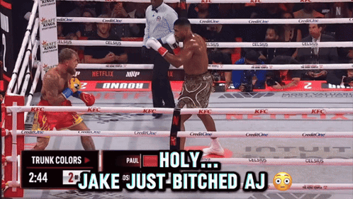 Content Description: a boxing match between paul and trunk colors with the words holy on the bottom