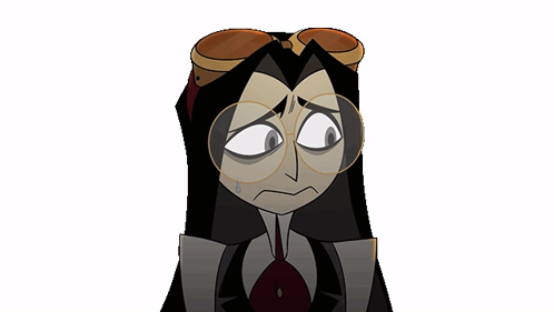 Content Description: a cartoon character with glasses and a sad look on her face .
