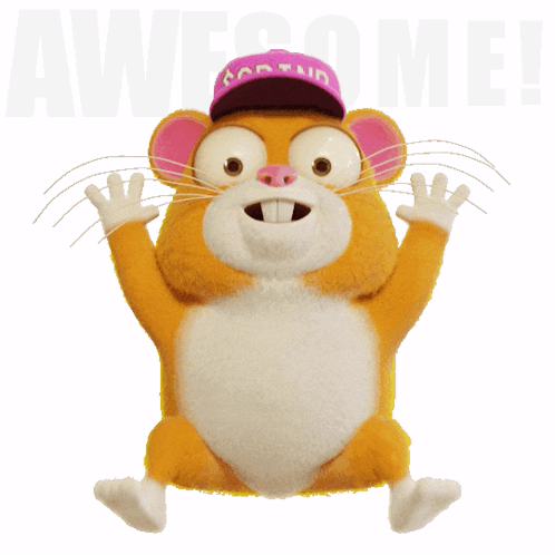 Content Description: a cartoon hamster wearing a pink hat that says awesome on it