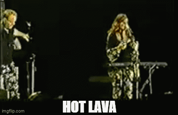 Content Description: a person 's feet are walking on a yellow surface with the words `` hot lava '' written on it .
