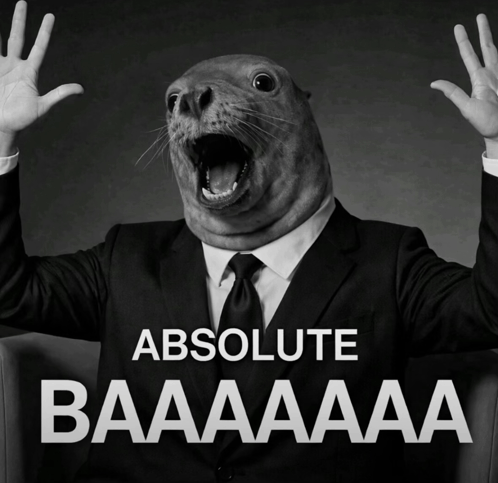 Content Description: a seal in a suit and tie with absolute baaaaaa written below it