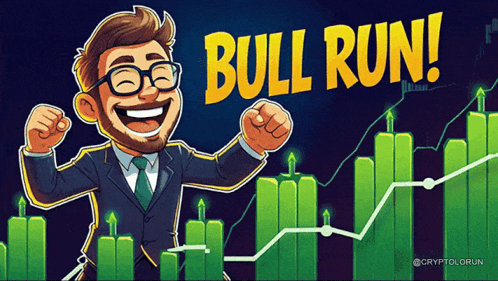 Content Description: a cartoon of a man in a suit and tie with the words bull run behind him