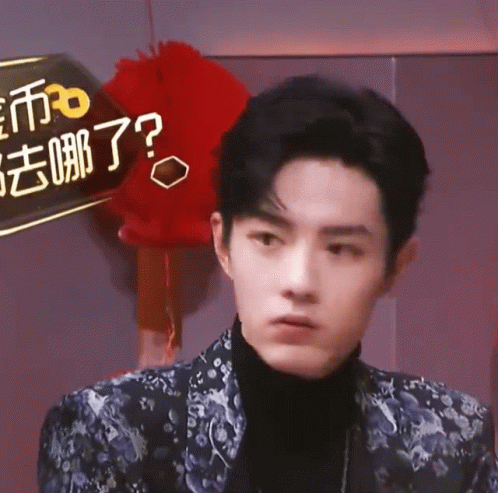 Content Description: a young man wearing a floral jacket and a black turtleneck is looking at the camera .