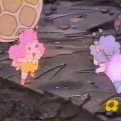 Content Description: two cartoon characters are standing next to each other on a rocky surface