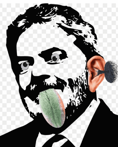 Content Description: a drawing of a man with a beard sticking out his tongue