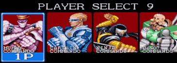 Content Description: a player select screen for a video game shows captain commando ninja commando baby commando and captain commando 1p