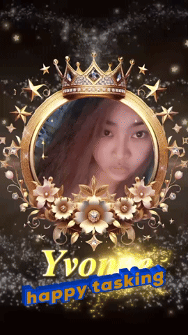 Content Description: a picture of a woman in a gold frame with the words yvon happy tasking