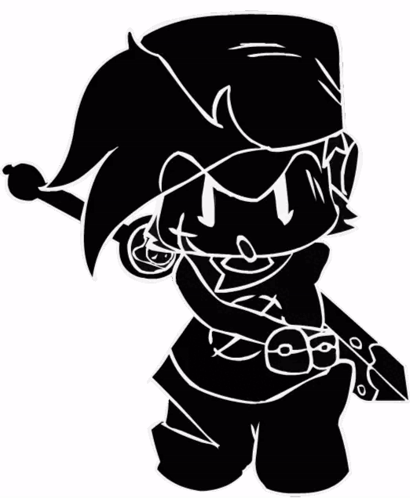 Content Description: a black and white silhouette of a cartoon character with a hat on holding a gun .