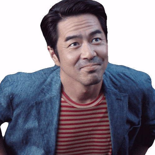 Content Description: a man wearing a blue jacket and a red and white striped shirt