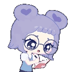 Content Description: a cartoon girl with purple hair and glasses is holding a notebook and writing in it .