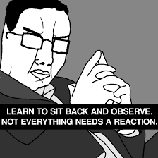 Content Description: a black and white drawing of a man with the words " learn to sit back and observe "
