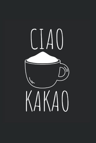 Content Description: a black background with a cup of coffee and the words ciao kakao on it