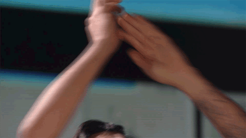 Content Description: a man and a woman are giving each other high fives
