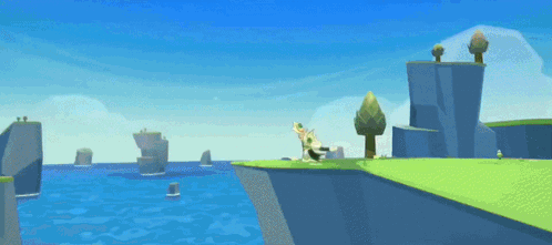 Content Description: a cartoon illustration of a cliff overlooking the ocean
