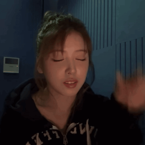 Content Description: a woman covering her face with her hand and wearing a hoodie that says abercrombie & fitch