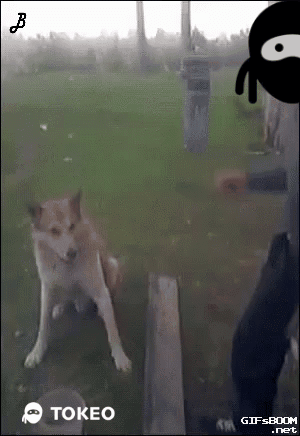 Content Description: a dog standing next to a person with a tokeo logo on it