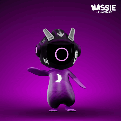 Content Description: a purple cartoon character with headphones and the name wassie on the bottom