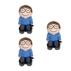 Content Description: three stuffed boys with big eyes are sitting on a white background