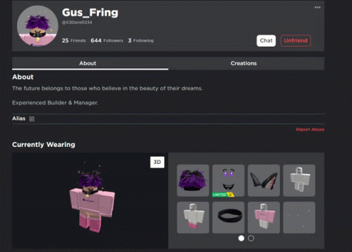 Content Description: a screenshot of gus fring 's profile page on roblox