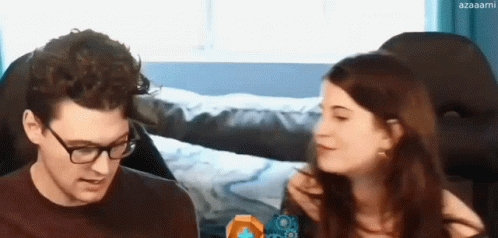 Content Description: a man and a woman are sitting next to each other and the woman is looking at the man
