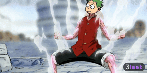 Content Description: a cartoon of a man in a red vest and black shorts with a 3look logo on the bottom
