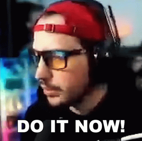 Content Description: a man wearing a red hat and sunglasses says " do it now "