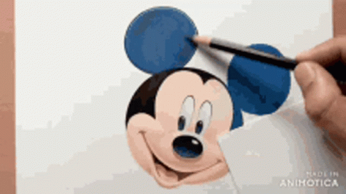 Content Description: a person is drawing mickey mouse on a piece of paper with a pencil
