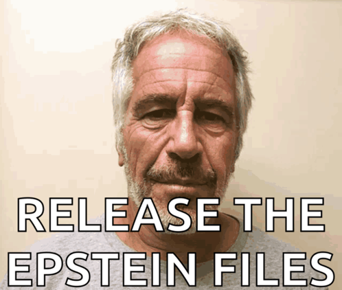 Content Description: a man with a beard and the words release the epstein files below him