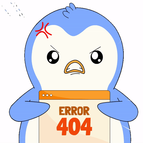 Content Description: a penguin is holding up a sign that says error 404