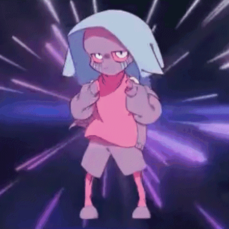 Content Description: a cartoon character is standing in front of a purple background wearing a pink shirt and shorts .