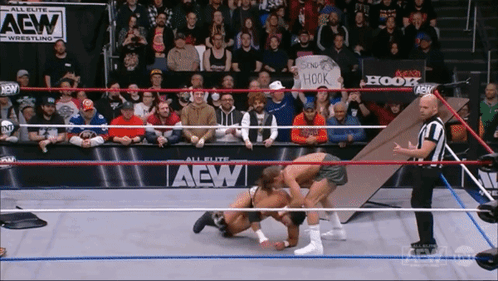 Content Description: a wrestling ring that has a sign that says hook on it