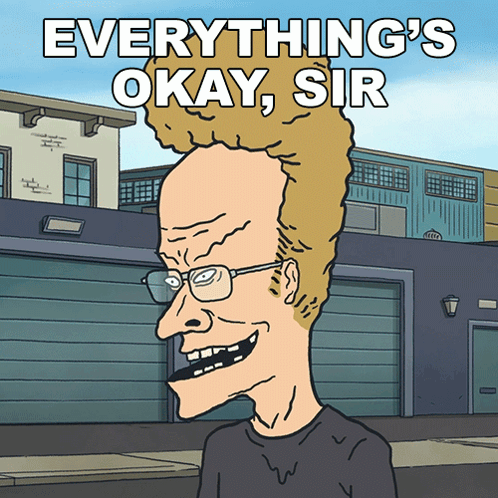 Content Description: a cartoon character says everything 's okay sir in front of a garage