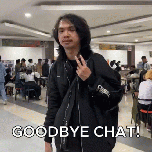 Content Description: a man in a black jacket is giving a peace sign in a food court .