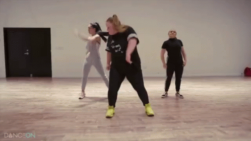 Content Description: a woman wearing a black shirt that says " no wrong way " is dancing