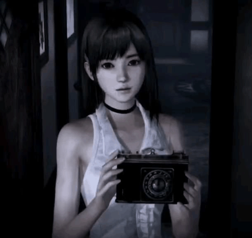 Content Description: a girl in a white tank top is holding a camera in her hands .