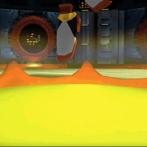 Content Description: a computer generated image of a room with a yellow floor and orange mountains