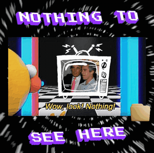 Content Description: a poster that says nothing to see here with two men in front of a television