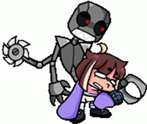 Content Description: a cartoon of a robot holding a girl in a purple shirt .