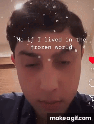 - Content Description: a close up of a man 's face with the words " me if i lived in the frozen world " on it