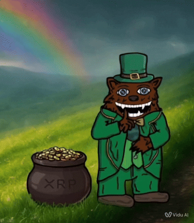 Content Description: a cartoon of a leprechaun standing next to a pot of xrp coins