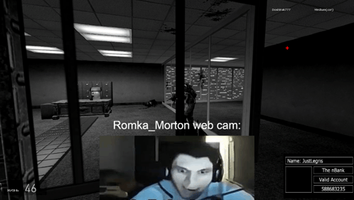 Content Description: romka morton is playing a video game with a webcam on