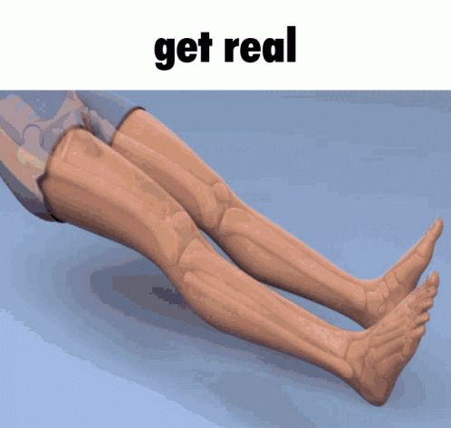 Content Description: a picture of a person 's leg with the words " get real " above it