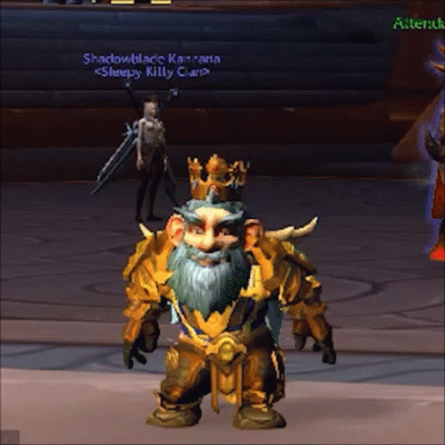 Content Description: a dwarf with a beard and a crown on his head