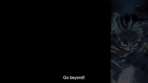 Content Description: two anime characters are standing next to each other and the words go beyond are visible