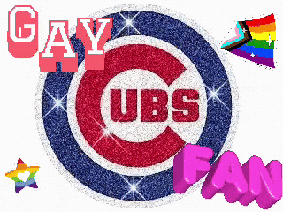 Content Description: a logo for the chicago cubs with the words gay cubs fan