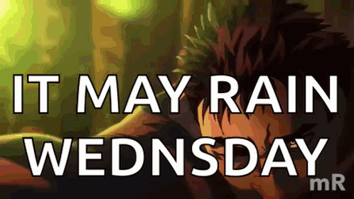 Content Description: a sign that says it may rain wednesday with a man in the background